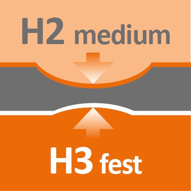 Unsere Bodyprotect 500 Matratze ist bis ins letzte Detail durchdacht: Ausgestattet mit einem ca. 18 cm hohen Komfortschaumkern (Gesamthöhe ca. 20cm) liefern wir die Matratze in 2 Härtegraden. Eine Seite HG 2 für weiche bis mittlere, die andere Seite HG 3 für mittlere bis harte Schlaftypen. Wir nennen dies Duo-Härtegrad. Die weiche Seite ist mit aufwändiger 7-Zonen 3D-Würfelschnitt-Technologie versehen, die H3 Seit ein sogenannter mit Lamellenschnitt-Technologie verarbeitet.